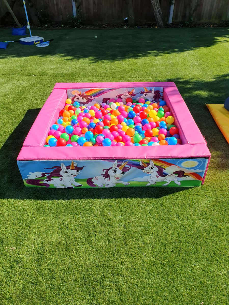 DETAILS: - Ball Pit - Dimensions: 5ft (doesn't require electricity) - Ball Pit Comes with Commercial Grade Balls - Comes with Soft Play Mat