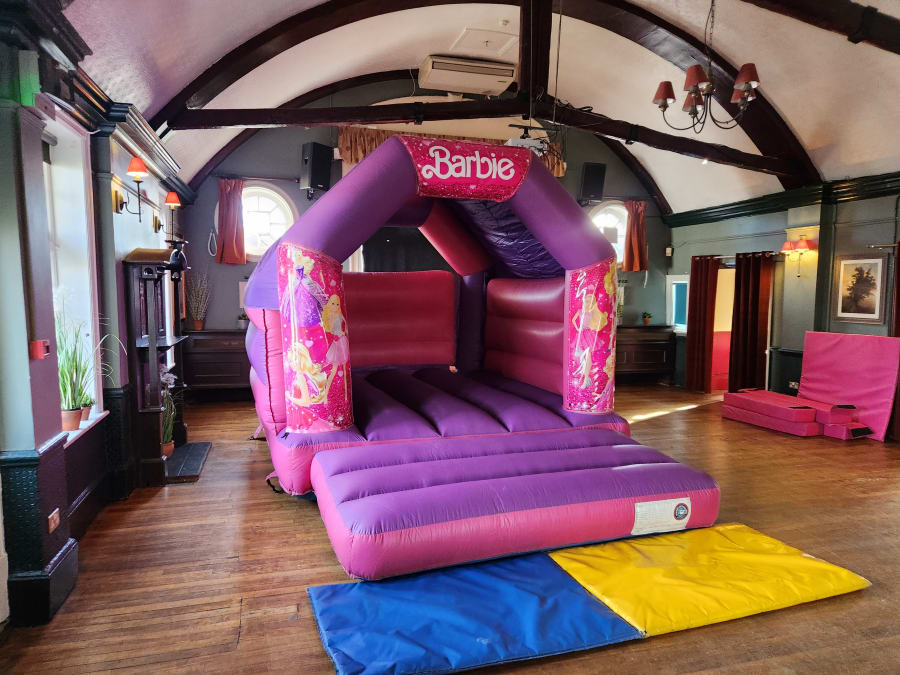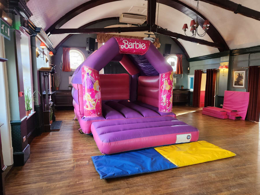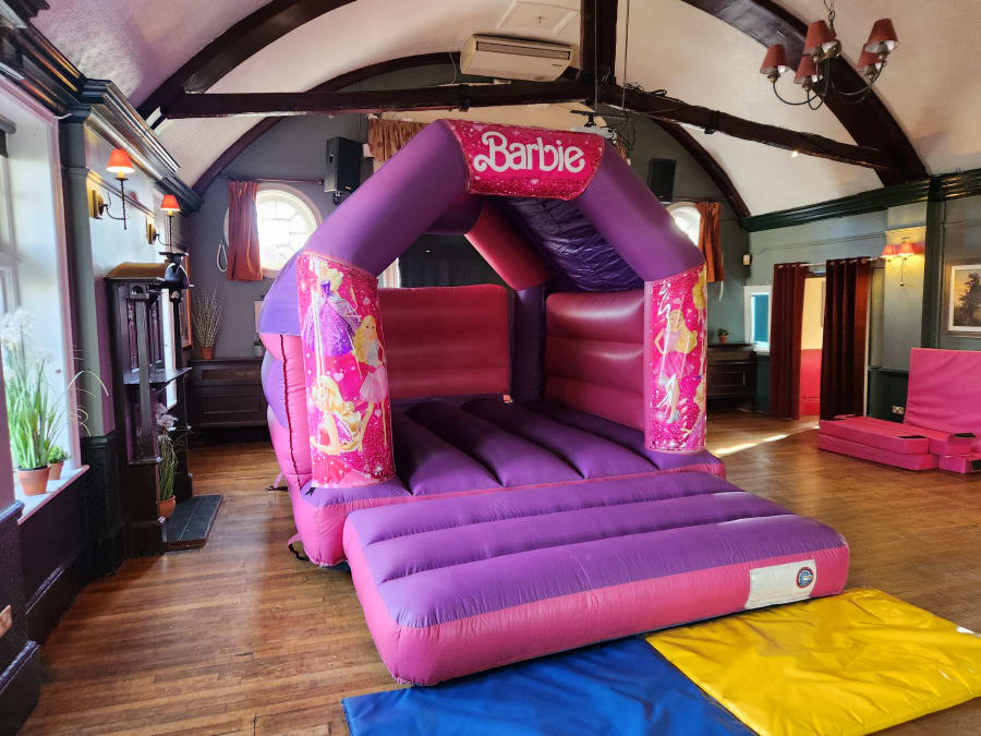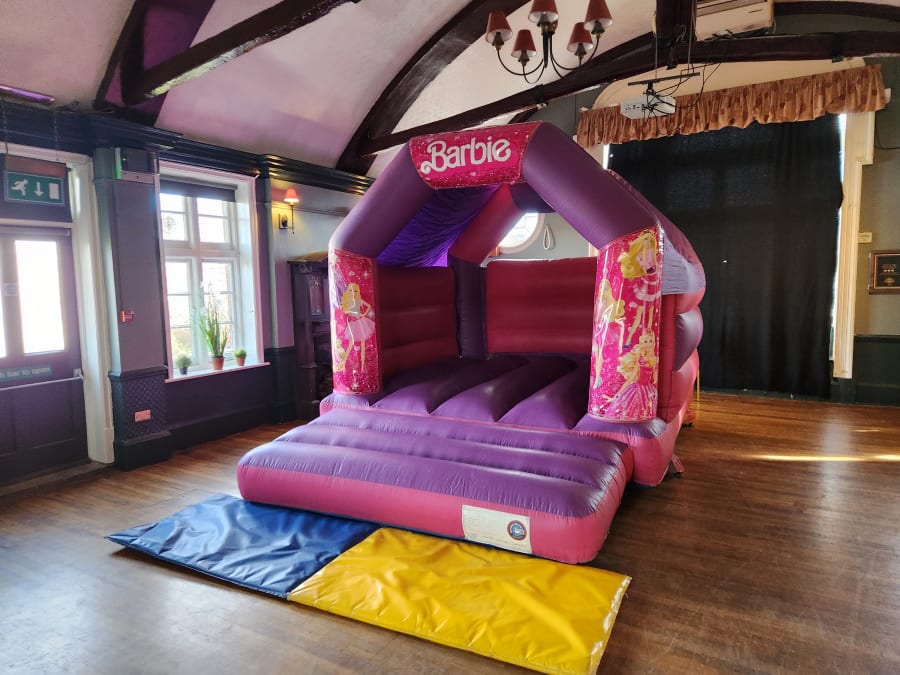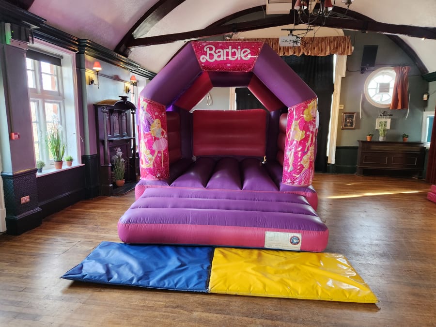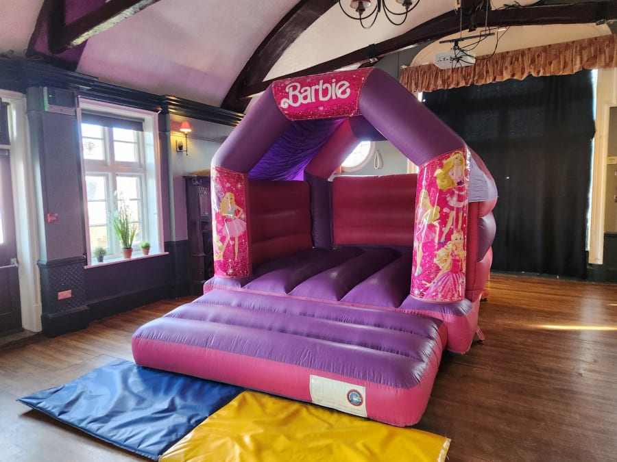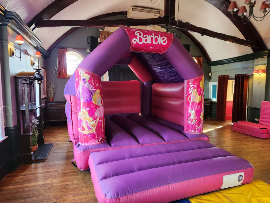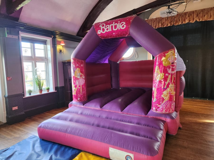 - Designed with the iconic Barbie theme, this bouncy castle will instantly create a magical atmosphere.