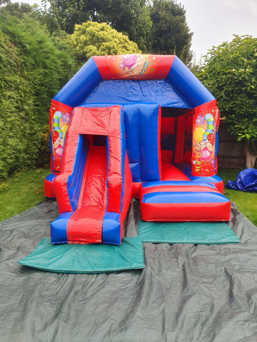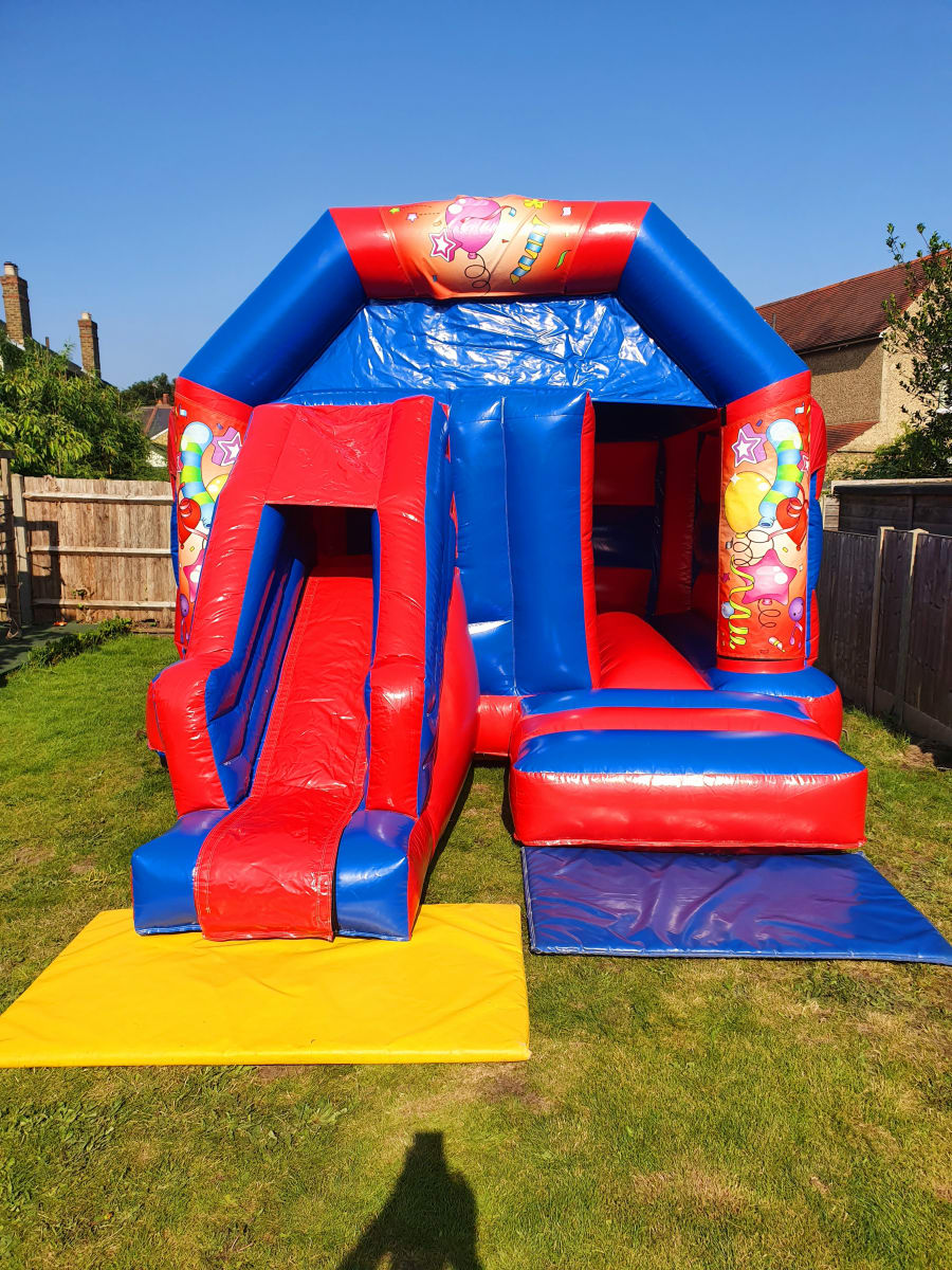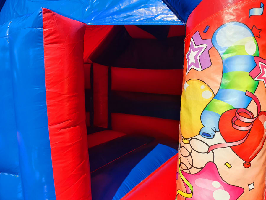 Our Balloons Bouncy Castle is designed to provide endless hours of entertainment. With its vibrant red/blue colour and cheerful balloon theme, it creates a festive atmosphere that will instantly put a smile on everyone's face. Whether it's a birthday party, a family gathering, or a school event, this bouncy castle is guaranteed to bring laughter and joy to the occasion.