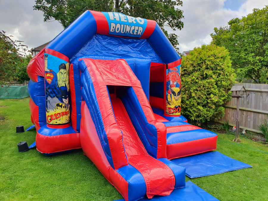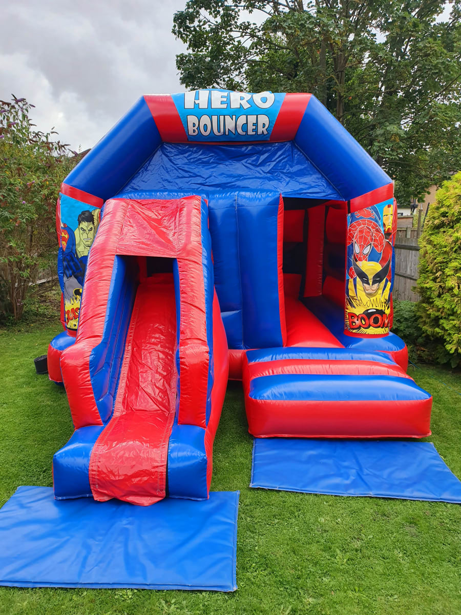 SUPER HERO BOUNCY CASTLE WITH FRONT SLIDE