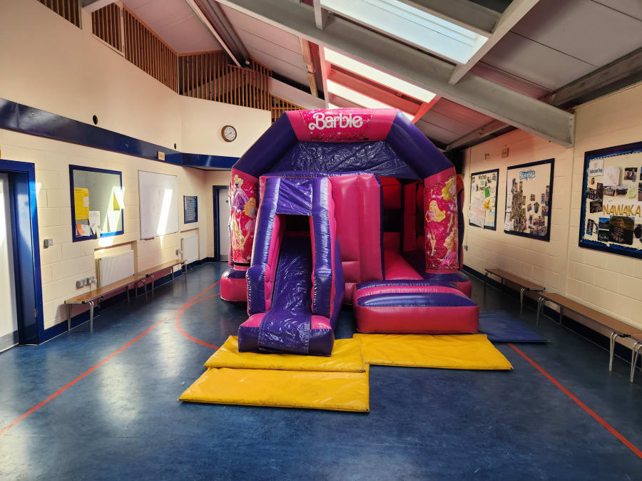 🌟 Our bouncy castle is not just any ordinary inflatable. It's a place where imaginations run wild, laughter fills the air, and unforgettable memories are made. Whether it's a princess-themed party or simply a fun-filled day with friends, our Barbie Bouncy Castle is guaranteed to be the highlight of the event!