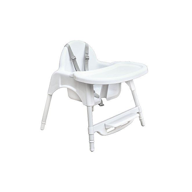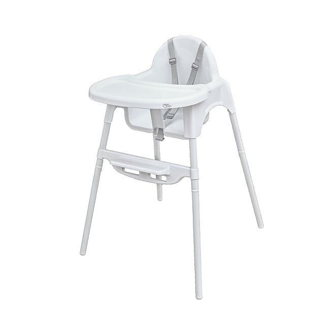 Classic 2 in 1 Highchair features an all round plastic seat and 5 point harness ensuring the highest safety. Bottom legs click off and remove the tray to make a junior chair. Simple wipe clean white plastic tray and seat. Easy assemble and dis-assembly for transport. Highchair features: