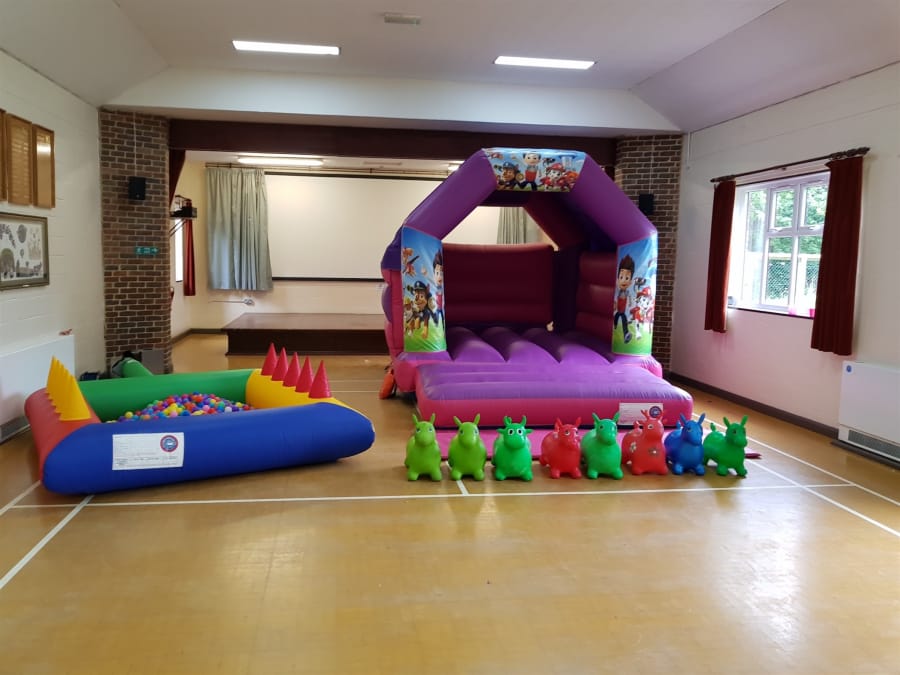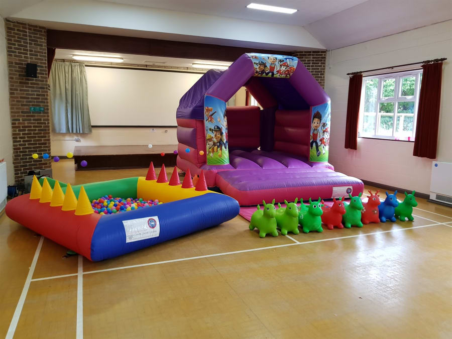 3. Bouncy Castle/Slide (17ft vs 12ft) + Air Juggler Ball Pit + 16 Piece Soft Play Equipment Set for £170